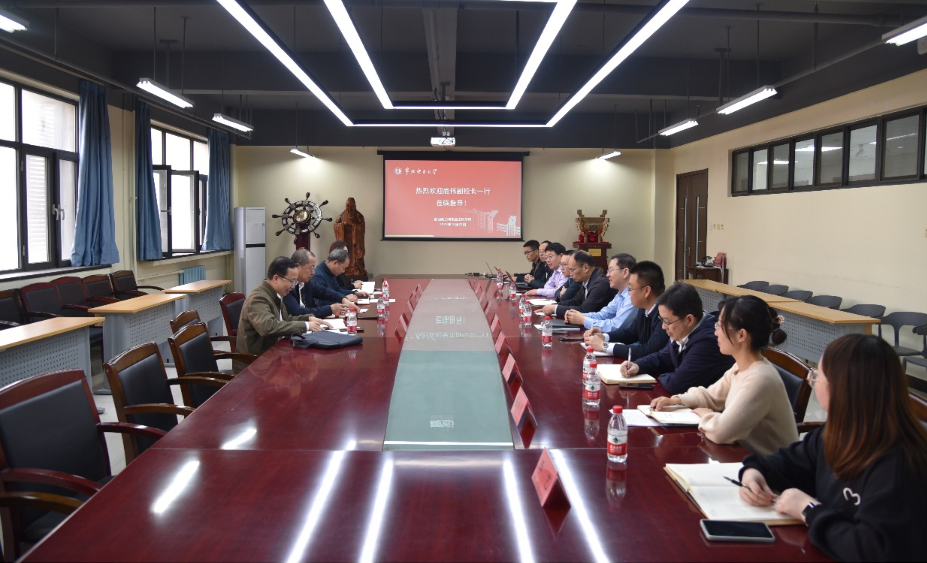 10月31日上午,校党委常委、副校长鹿伟到Ai脱衣 调研指导工作。后勤服务集团党总支书记吴万凯,后勤管理处处长、后勤服务集团总经理张兵仿,能动学院党委书记肖万里、院长杜小泽、组织员李辉、党委副书记董剑、副院长张宇宁及教师代表参加工作调研会议。