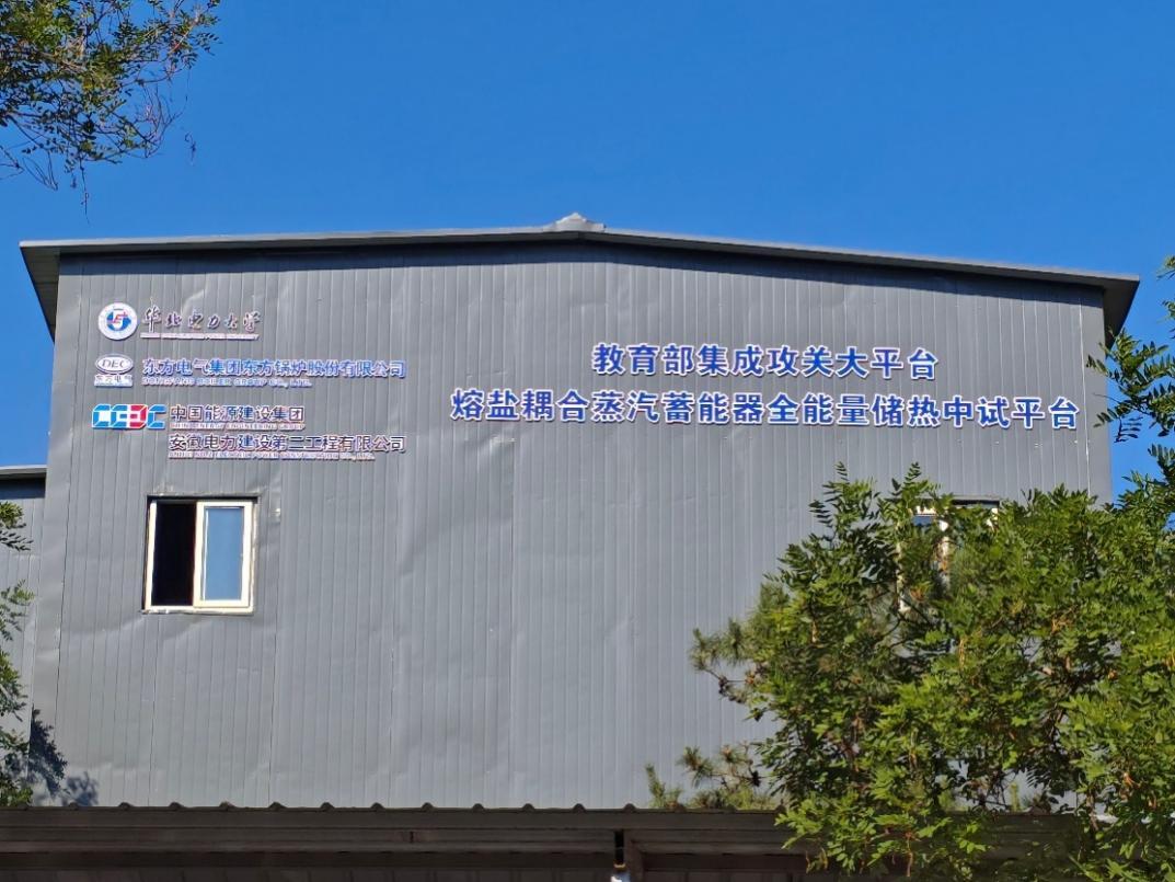 在华北电力大学能源动力与机械工程学院、清洁高效燃煤发电关键技术与装备教育部集成攻关大平台和国家储能技术产教融合创新平台的联合支持下,团队联合东方电气集团东方锅炉股份有限公司、中国能源建设集团安徽电力建设第二工程有限公司建造了 300kW/900kWh熔盐耦合蒸汽蓄能器全能量储热中试平台,完成试运行。
